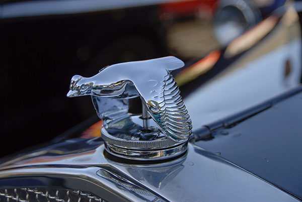 Back in the day before aerodynamics was everything and designers presented to us smooth sleek bodies without exterior extras, cars were designed as pieces of practical art. I’m sure it is no mistake that the art deco style of the twenties helped influence automotive design. Elegant sweeping fenders, beautiful v-styled hoods, interior lamps and burl wood dash boards added flair to an otherwise pedestrian piece of transportation. A small but obvious part of the car’s art was the ornament at the front of the hood. Hood ornaments were both practical and artistic. In the early days Henry Ford’s Model T hood ornament doubled as a thermometer for the radiator. Mostly, hood ornaments are reflections of an era and part of the marketing and persona of the car.