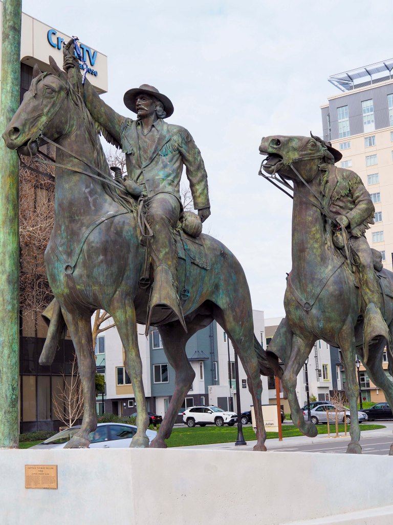Captain Fallon had a varied life. The Bear Flag he is holding in the statue came from John C. Fremont whom he had joined on the third expedition into California. The Bear Flag revolt didn’t hold, and California joined the union at the close of the Mexican American War with the infamous Compromise of 1850. He spent some time in Santa Cruz where he married a Californio girl from Santa Cruz in 1849. He also spent some time in the gold fields, and later returned to San Jose where his famous Fallon house still sits across from San Pedro Square in downtown San Jose. He was also the tenth mayor of San Jose. All in all, Fallon would seem to be a person for whom a statue might be appropriate.