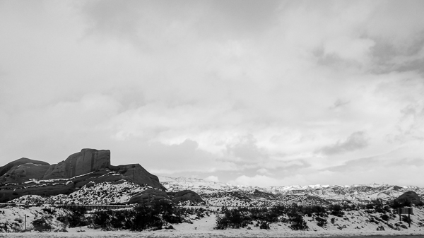 I’m currently reading about Custer’s Last Stand by Nathaniel Philbrook. Custer’s troops had to camp in their pup tents without any heating beyond uniforms and blankets they had taken with them. In the run up to the battle at Little Big Horn, they ran into some spring snow. It was cold. Relying on black and white, I took this photo that reminds me of images I have seen of the badlands in the Dakotas.