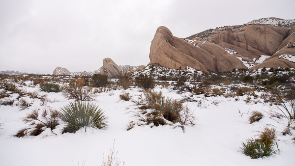 Any big weather event is a good excuse to go take some photos. I can tell myself I do it to document the event but the truth is I just want an excuse to take some photos. It worked! I took my gear to the Cajon Pass along I-15. At forty miles it wasn’t exactly close by but by LA traffic standards it wasn’t far either. The area known as Mormon Rocks has several things going for it. First, it is right off the freeway. Second, there are several very busy train tracks that transport material from the greater LA area including merchandise from the twin ports of Los Angeles/Long Beach to all points east. The climb up the hill to the high desert requires multiple engines to push and pull the long trains up the incline. Third, the area is mostly devoid of the trappings of suburban life. The rocks, the trains, and the empty or clouded sky are wide open.