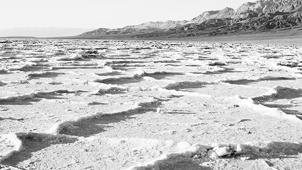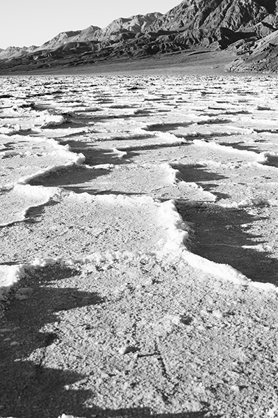 Our eyes are drawn to certain colors and color combinations. Have you ever noticed how anything red draws our attention? Depending on your purpose, this can be beneficial or distracting. At Zabriskie Point and Artist’s Palette color is our friend in both capturing the essence of the place but in our memories of the trip. At Badwater Basin, color is unimportant or distracting. The floor of Death Valley at Badwater is dirty white. What makes the landscape interesting is the patterns made by the minerals left behind, not the specs of dirt embedded within the minerals. In situations where color is distracting or an emphasis on patterns is the focus of the photo, black and white photography is still king.