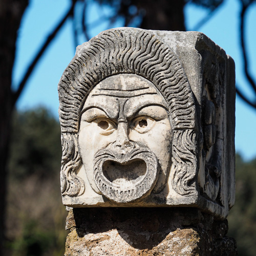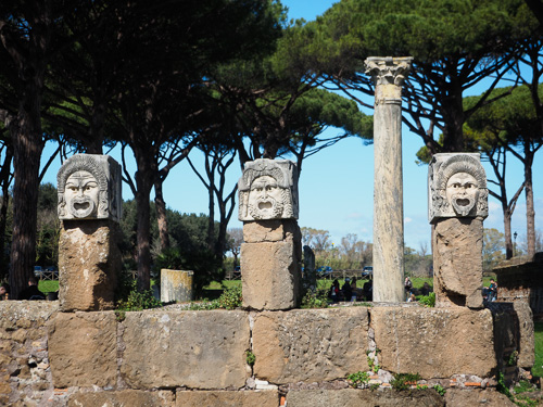 Past the baths of the old Roman street, no longer smooth as it was during the city’s heyday, the visitor approaches the government with its Forum for concerts and plays, and city hall. Archeological work began in the first decade of the 20th century. According to the material at the site, in the 1920’s and 30’s Mussolini’s government restored part of the Forum and hosted concerts for the public. For the fascists, linking Italy with the glory of Rome provided inspiration for a renewed, strong, and internationally important Italy in the 20th century. Both the Forum and the temple behind the stage were not only build on an older temple site but included new statues of Greek gods as inspiration, a reminder for guests that Rome adopted Greek culture and their pantheon of gods.