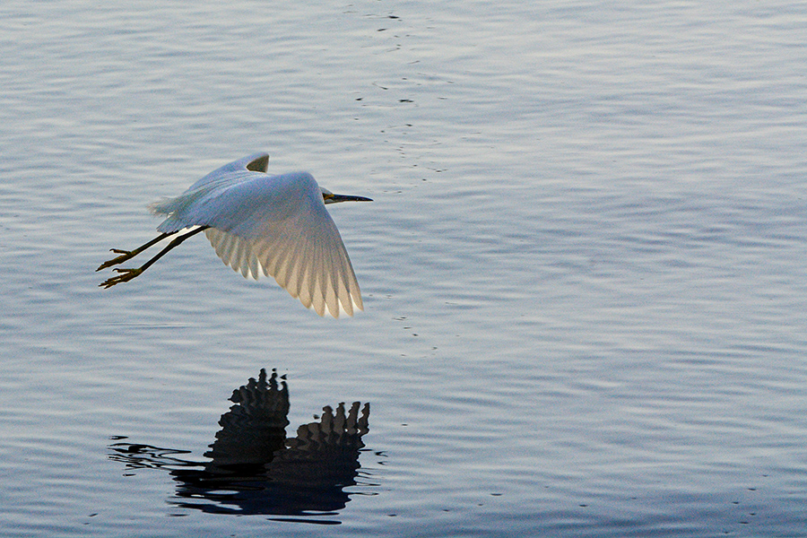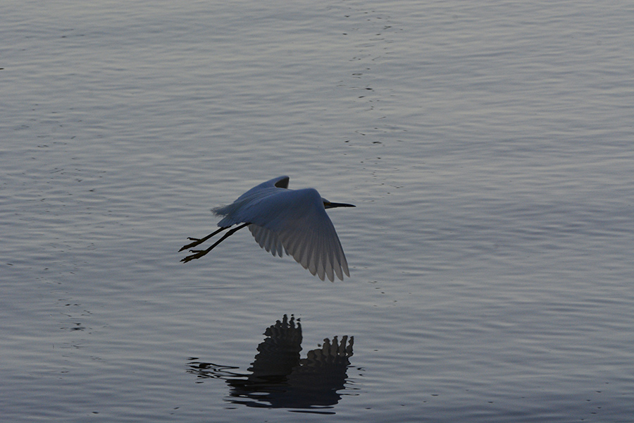This image of a Great Egret flying over the waters of Lake Elsinore was captured during the golden hour. I was actively seeking opportunities to highlight a large bird and use the setting sun as a tonal element of the photo. This egret “volunteered” to be my subject. When I first saw the image, however, knew I had some more work to do. Using a couple of sliders and maksing in Adobe Lightroom, I pulled out the orange reflection off the water to the underside of the wing. While I saw this in realtime, the sensor didn’t give it to me when it did it’s thing.